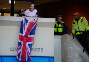 ਐਪਿੰਗ ਫੋਰੈਸਟ ਜ਼ਿਲ੍ਹਾ ਪ੍ਰੀਸ਼ਦ ਦੀ ਇਮਾਰਤ ਦੇ ਬਾਹਰ ਲਗਭਗ 200 ਲੋਕ ਇਕੱਠੇ ਹੋਏ ਜਿੱਥੇ ਇੱਕ ਔਰਤ ਪੌੜੀਆਂ ਚੜ੍ਹ ਕੇ ਯੂਨੀਅਨ ਦਾ ਝੰਡਾ ਲਹਿਰਾਇਆ ਉਜਾਲਾ ਪੰਜਾਬ ਨਿਊਜ਼ ਨੈੱਟਵਰਕ ਲਗਭਗ 200 ਲੋਕ ਇਲਾਕੇ ਵਿੱਚ ਸ਼ਰਨ ਮੰਗਣ ਵਾਲਿਆਂ ਨੂੰ ਰੱਖਣ ਵਾਲੇ ਇੱਕ ਹੋਟਲ ਦੇ ਗੁੱਸੇ ਵਿੱਚ ਏਪਿੰਗ ਦੇ ਕੌਂਸਲ ਦਫਤਰਾਂ ‘ਤੇ ਉਤਰ ਆਏ। ਲਗਭਗ 200 ਲੋਕ ਏਪਿੰਗ ਫੋਰੈਸਟ […]